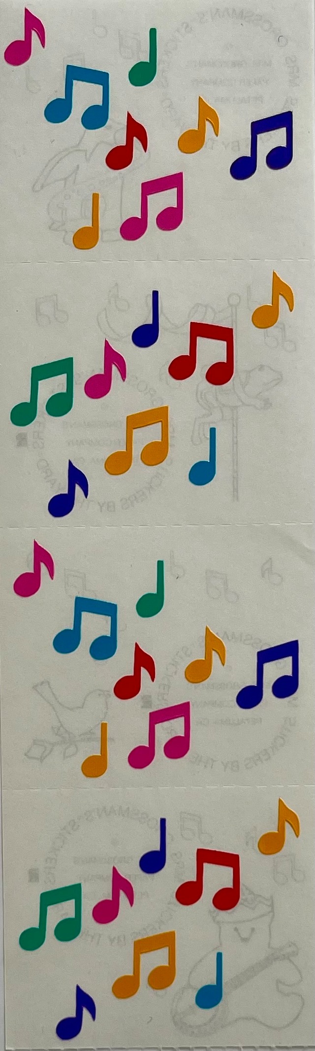 1992年製、カラフルな音符のステッカー。 ※おひとりさま1枚までとさせていただきます。