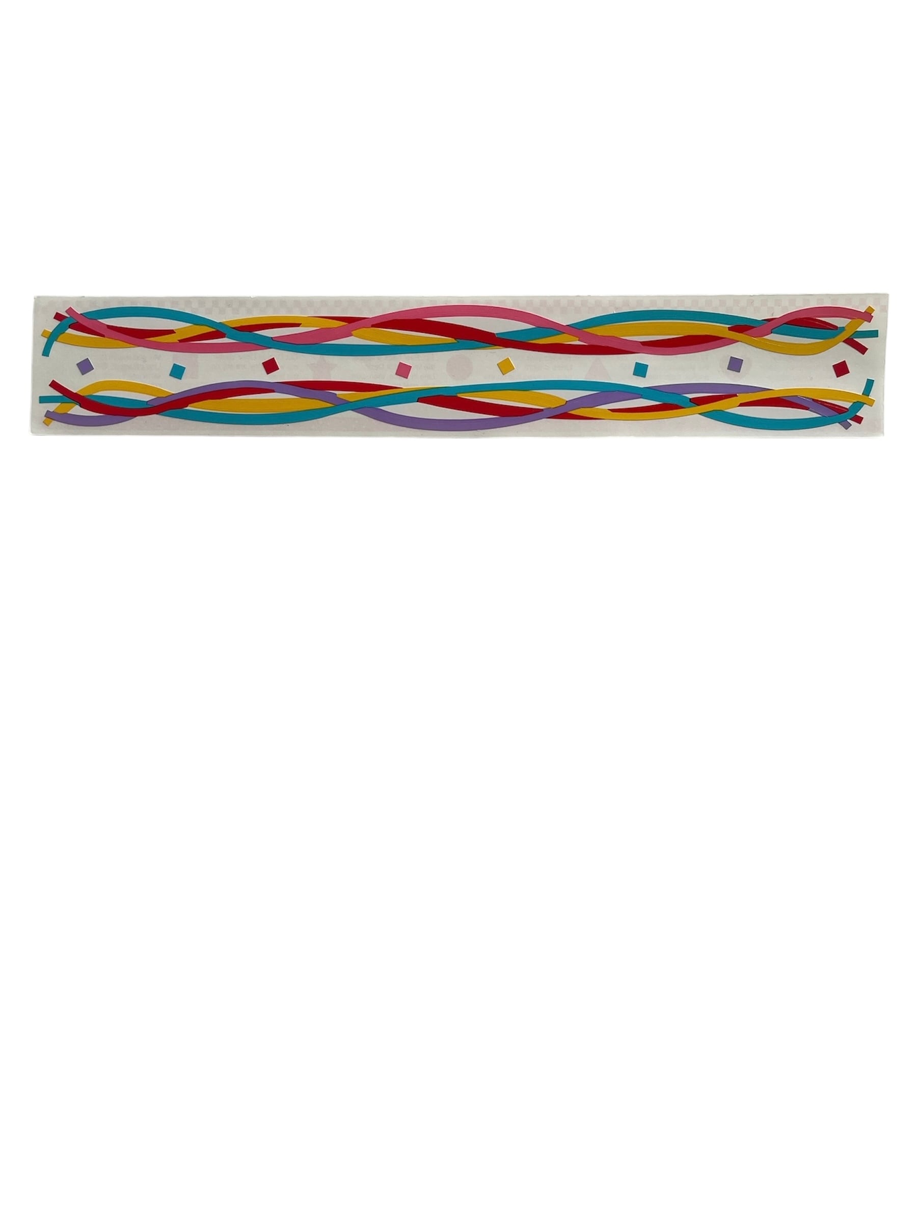 カラフルなリボンが絡まっているような、細長いデザインラインステッカー。 コンフェティのような、小さな◇のステッカーもついています。 台紙の長さ:約30.5cm ※おひとりさま1枚までとさせていただきます。