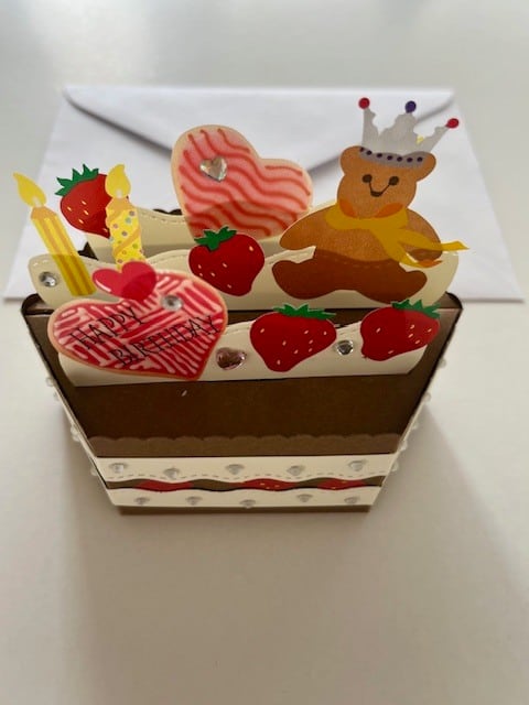 まるで本物のケーキのように立体的なバースデーカード。