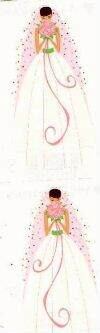 ヴェールのキラキラと、淡いピンクのブーケがとても素敵な花嫁さんのステッカー。 半透明ですので、淡い色のカードに貼ることをおすすめします。