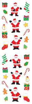 ニコニコ笑顔のサンタさんと、小さなプレゼントたちのステッカー。 小さなカードやタグにちょこっと貼るのに便利なサイズです。